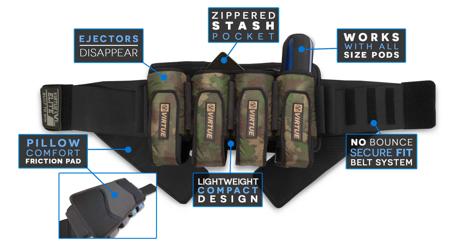 The VIRTUE Elite pack is lightweight, comfortable, durable, and packed with features. The Stealth Ejector system reduces the profile of your pack immediately after a pod has been pulled. This allows for a tight profile while maintain the smooth action of the ejector system no matter what size pods you use.
